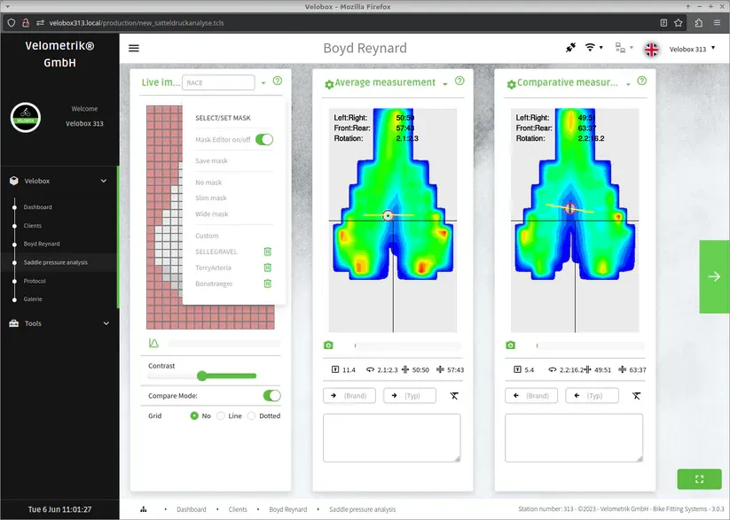 during bike fitting. It integrates seamlessly into your equipment and your existing processes. You can underpin your expertise with reliable data, gain new insights and document the successes for your customers in a transparent and comprehensible way. It is easy to use via a web browser, even without an existing internet connection and installation.